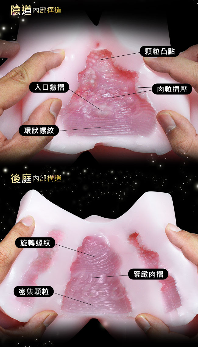 3D立體通道,高仿真入口設計,完美內部構造超立體3D構造,真實再現內部構造,多層內壁包裹,高仿真肉感厚實發達的G點,無數皺褶構造和凸起結構,美臀極品當之無愧