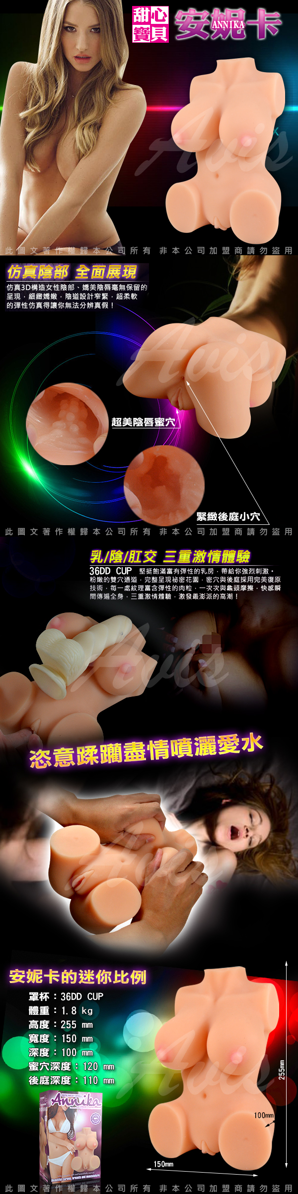 .商品名稱:MINI系 Annika 安妮卡 1.8KG 乳交/陰交/肛交(三種玩法)(仿真構造私處)自慰器