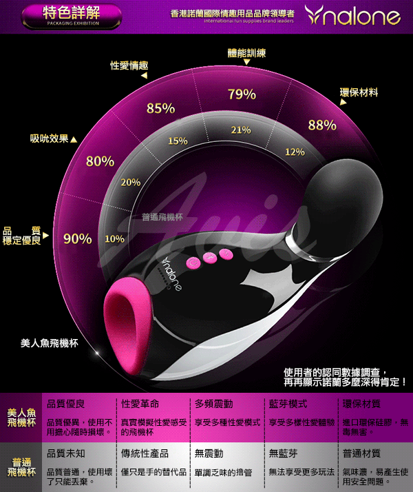 .主商品:香港Nalone Mermaid 美人魚之吻 七段變頻 藍牙互動口交 氣囊自慰飛機杯 *1