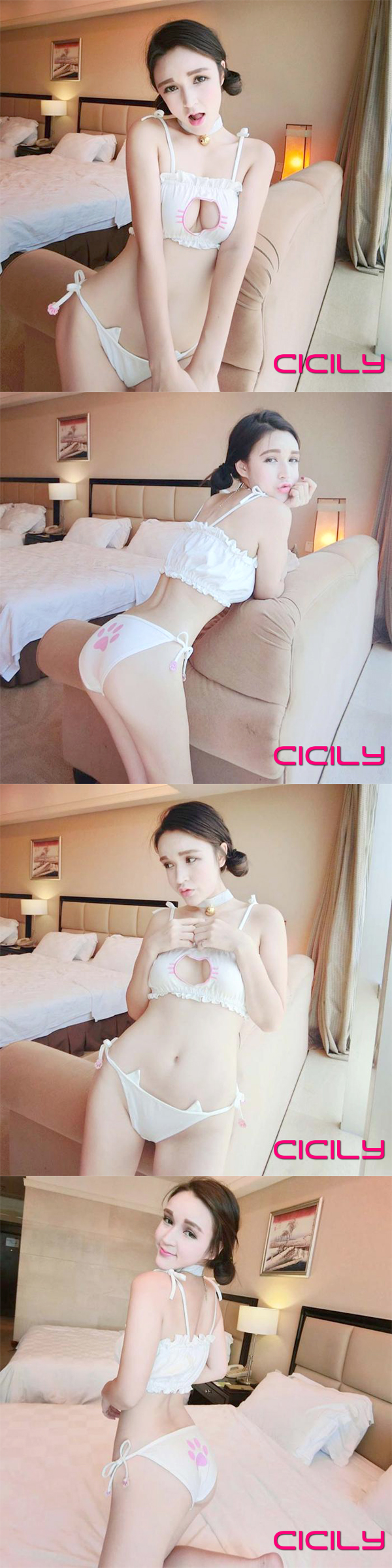 虐戀精品CICILY 小萌貓咪鏤空套裝 兩件式 泳衣泳裝cos死庫水 白