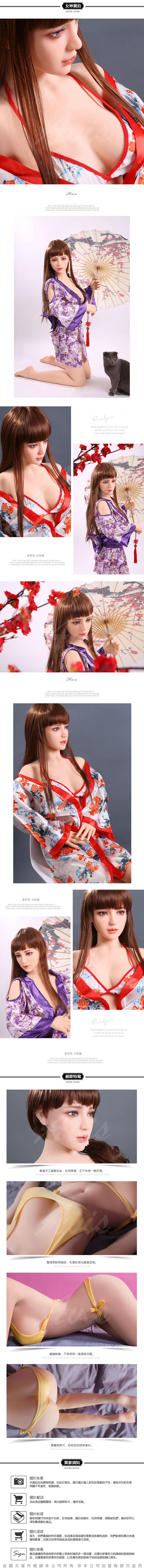 【材料】外皮(皮膚)為高級無毒超軟TPE,內有金屬骨架,四肢的活動範圍與真人類似。