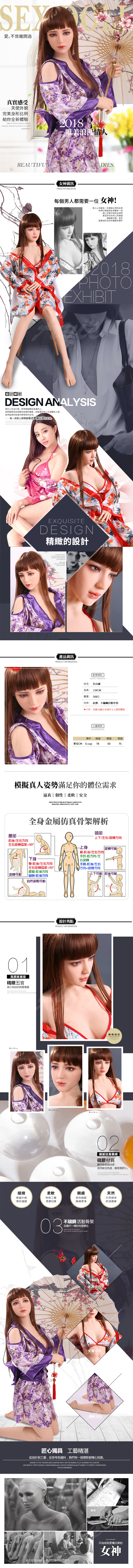使用部位:陰交、肛交,內置合金骨骼可固定姿勢,關節可動,可隨意變更姿勢