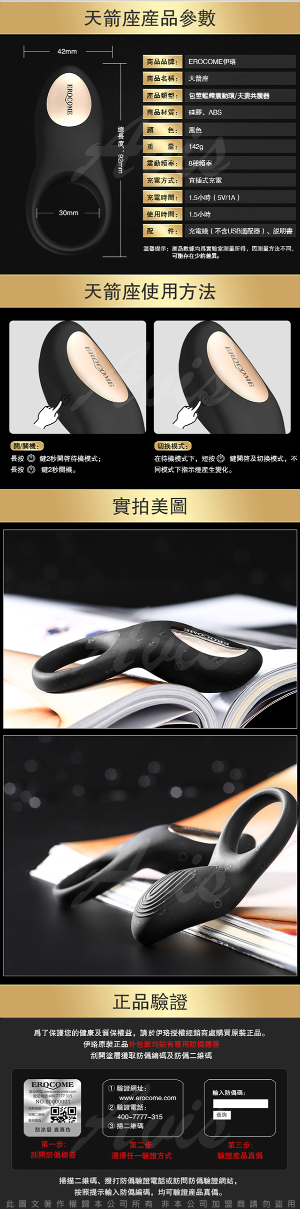 .商品名稱:EROCOME伊珞 天箭座 SAGITTA 包莖鍛鍊 鎖精共震環