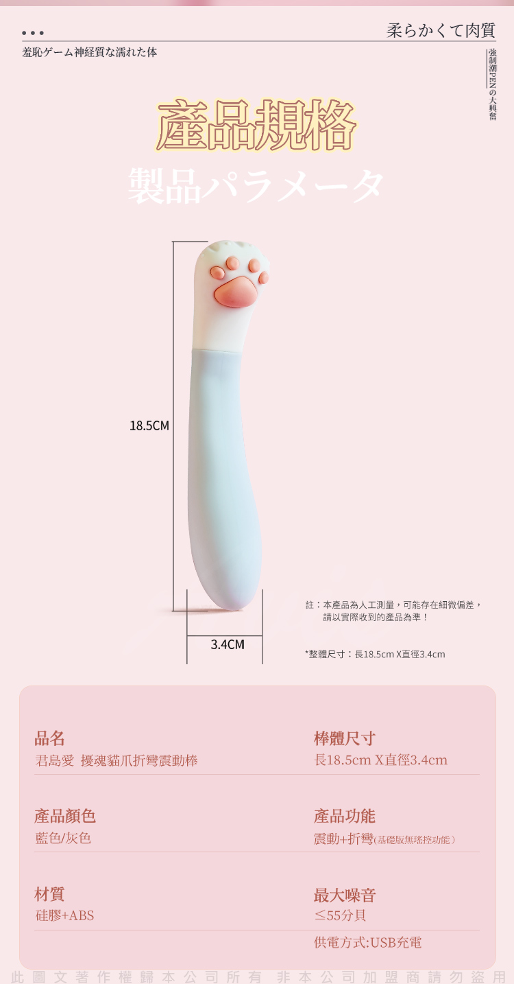 品名:君島愛|可愛貓爪|可彎曲按摩棒