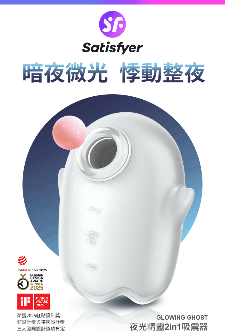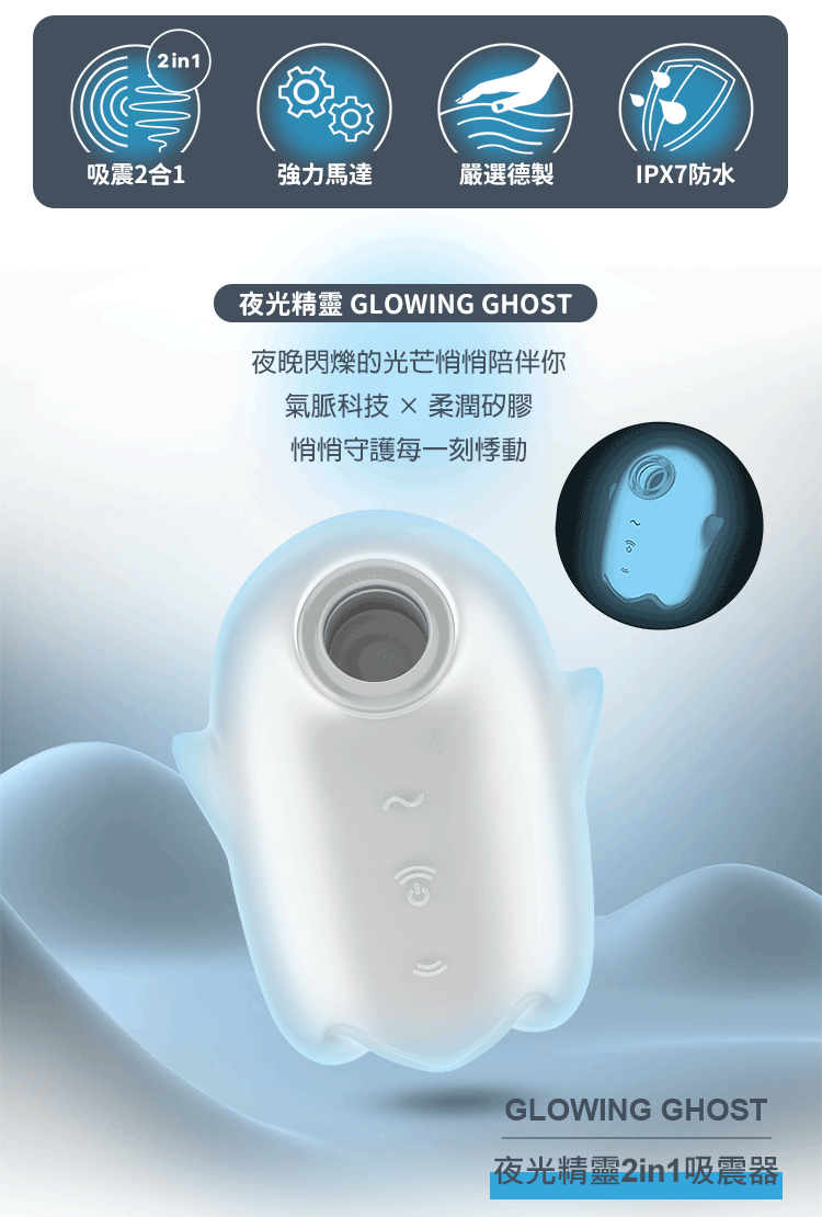 品名:Satisfyer|Glowing Ghost|夜光精靈 發光吸吮陰蒂震動器 亮白