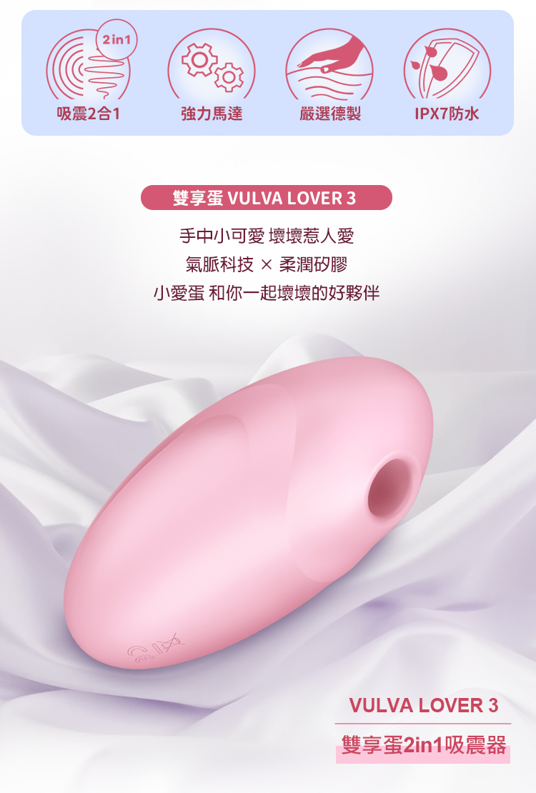 品名:Satisfyer|Vulva Lover 3|雙享蛋 吸吮陰蒂震動器 粉
